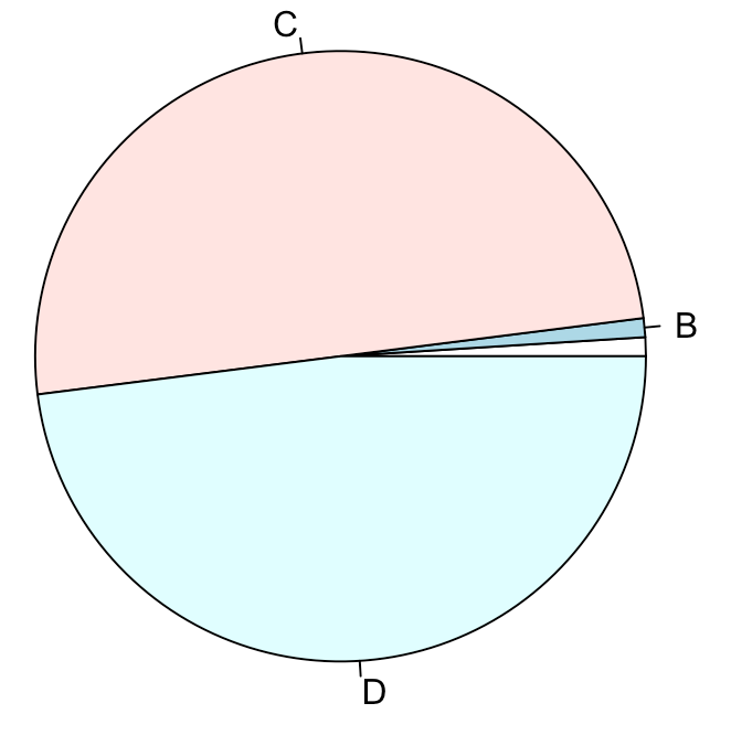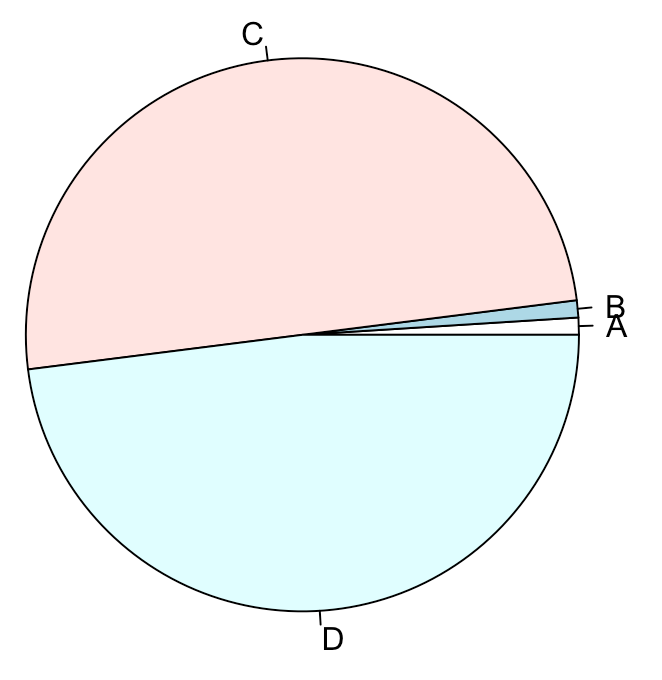 pie(x$cnt, label=c("","B","C","D"))