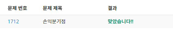 최초로 이익이 발생하는 판매량을 찾는 문제로,