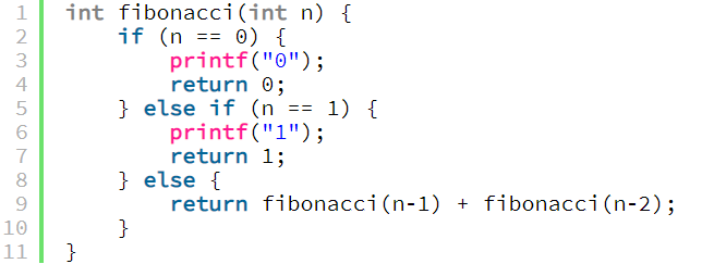 (요약) 위 함수는 피보나치 수열에서 사용된 0과 1을 출력하는 함수이다.
