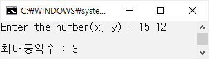 printf("\n최대공약수 : %d\n", x);