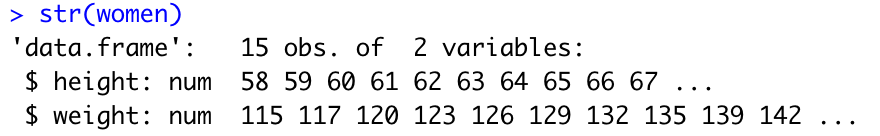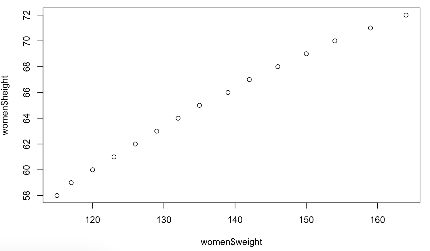 plot(women$weight, women$height, type = "p")